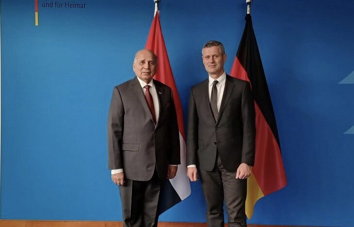 بحث نائب رئيس الوزراء وزير الخارجية فؤاد حسين، اليوم الجمعة، مع وزير الدولة في وزارة الداخلية الاتحادية الألمانية بيرند كروسر معالجة أوضاع العراقيين ممن رفضت طلبات لجوئهم.