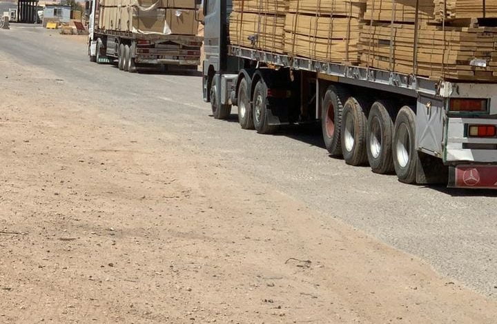المنافذ تعيد 5 عجلات محملة بالخشب الى الجانب الاردني
