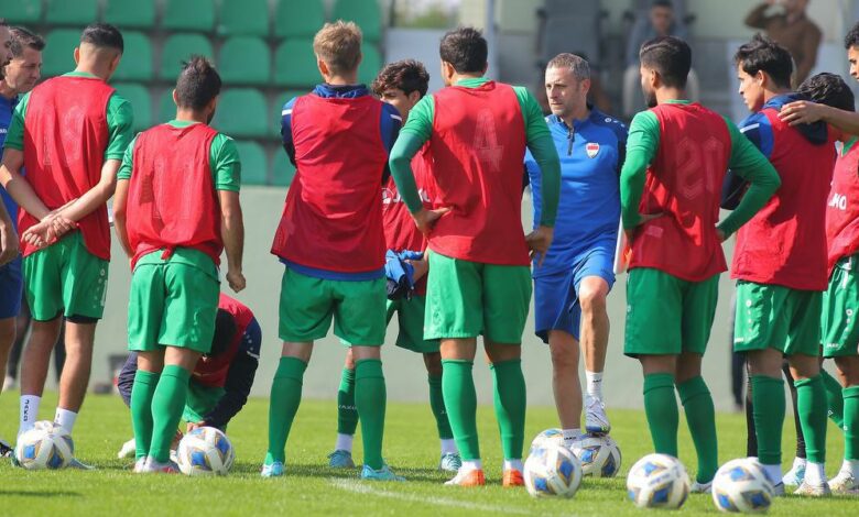 تدريباتُ اليوم حضرها رئيس الاتحاد العراقي لكرة القدم عدنان درجال، وعضو الاتحاد يحيى زغير والتي احتضنتها مراكز تدريبات المدينة الرياضية، وشارك فيها (24) لاعباً هم كل من: جلال حسن ، فهد طالب ، أحمد باسل ، علي عبادي، ، ضرغام إسماعيل، إبراهيم بايش ، علي فائز ، مصطفى ناظم ، زيد تحسين، اسو رستم ، علاء عباس ، مؤمل عبد الرضا ، أحمد فرحان، أحمد يحيى ، محمد علي عبود، حسين علي ، مناف يونس ، أمير العماري ، ريوان أمين ، حسين عمار، أحمد ياسين ، حسن عبد الكريم ، حسين جبار وشيركو كريم، والأخير صعّد من وتيرة تدريباته لكنه لن يكون متاحاً للمشاركة في مباراة الغد.