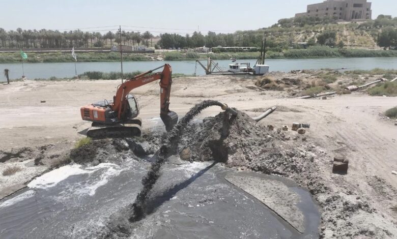 الموارد: استمرار أعمال تنظيف مآخذ شط الحلة وتنفيذ محطة ضخ المحاويل