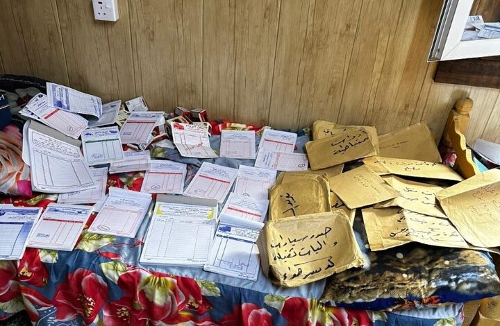 وأوضح أن “العمليَّة أسفرت أيضاً عن ضبط إضبارة معاملات شراء للأعوام (2021 و2022 و2023) تحتوي على وصولات شراء وهميَّة صرفت لها مبالغ ماليَّة”، مبيناً أن “وصولات الشراء ودفاتر الوصولات والأختام المضبوطة تستخدم من قبل المتهمين في تسيير معاملات وهميَّة لتصليح وصيانة الآليات، وأخذ مبالغ تلك المعاملات لحسابهم الخاص”.