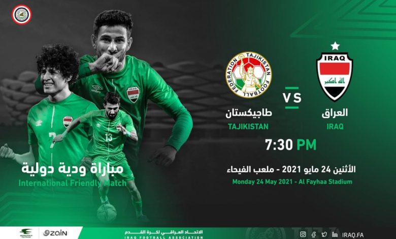 يحتضن ملعب الفيحاء في مدينة البصرة الرياضية، في تمام الساعة السابعة والنصف من مساء اليوم الاثنين، مباراة منتخبنا الوطني لكرة القدم امام نظيره المنتخب الطاجيكي، التي تأتي في إطار تحضيرات الفريقين للتصفيات القارية المزدوجة.
