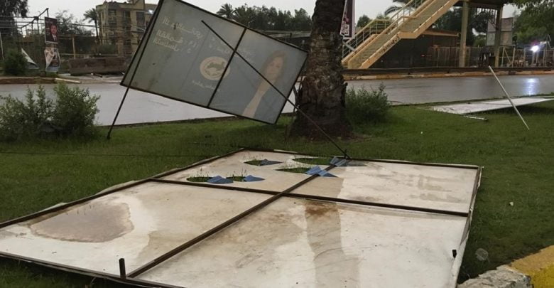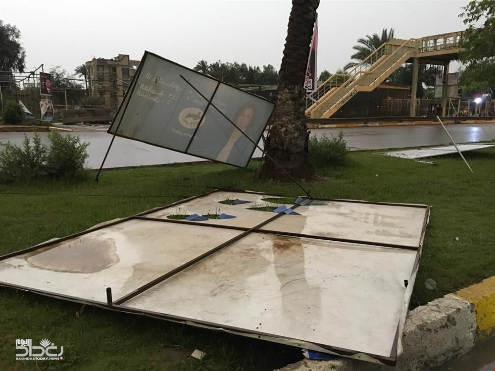 ازالت امانة بغداد ملصقات وصور ولافتات وجداريات مرشحي الاحزاب من شوارع بغداد بعد وقت قصير من انتهاء عمليات الاقتراع .