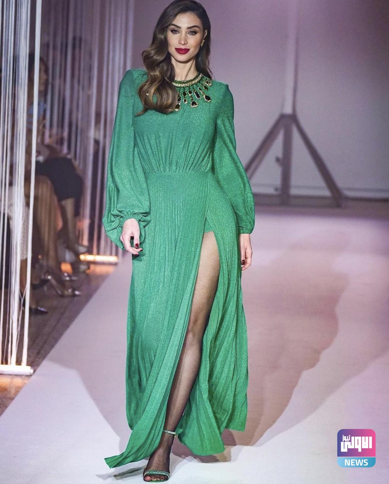 انبيلا هلال خلال مشاركتها في عرض ازياء elisabettafranchi