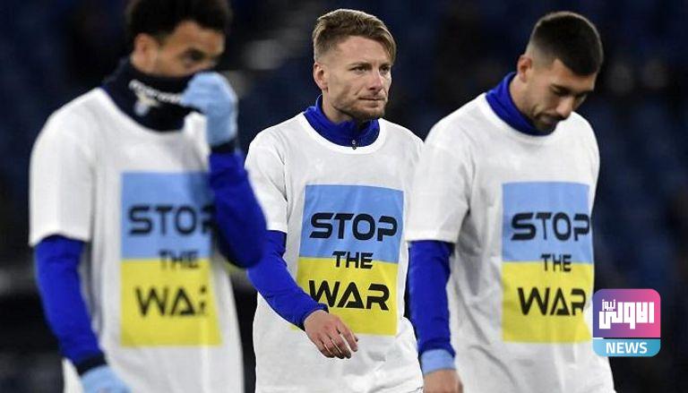 كما ارتدت فرق الدوري الإيطالي، وبينها فريق لاتسيو قبل مواجهته أمام نابولي، خلال الإحماءات قمصانا كتب عليها أوقفوا الحرب.