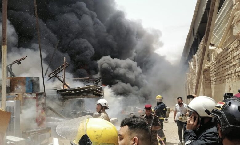 اندلاع حريق في مخزن تجاري بالنجف الأشرف