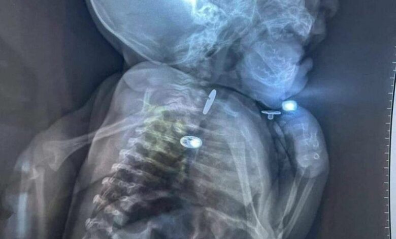 انقاذ طفل عمره شهر ابتلع قطعة معدنية في البصرة (صور)
