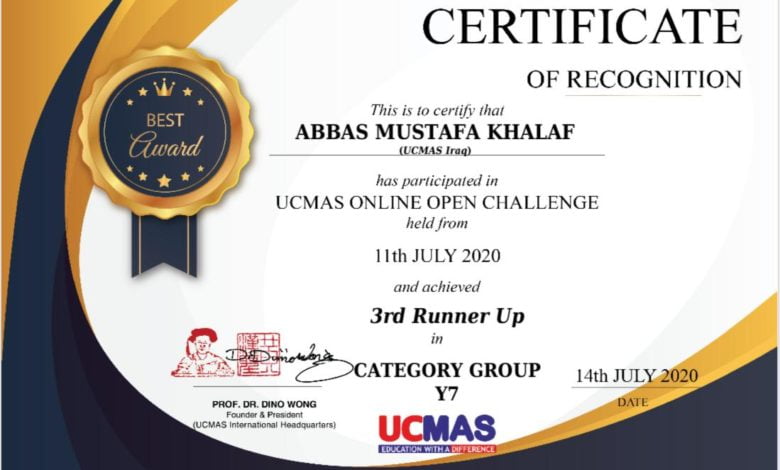 وقال المدير المفوض لمعهد الفكر الهادف، الوكيل الحصري لبرنامج اليوسي ماس في العراق، نائل الجابري، إن “العراق شارك في البطولة السنويه لبرنامج اليوسي ماس للمرة الثالثة على التوالي مع ٨٧ دولة وقد شاركنا ب٨٠ تلميذا من جميع المحافظات وحصلنا على المركز الثالث عالمياً من خلال حل ١٠٠ سؤال في ٣ دقائق بفضل المواهب الكبيرة لتلاميذ مدارس محافظة البصرة الأهلية عدا التلميذ عباس مصطفى خلف من مدرسة الثغر الأبتدائية والذين نفتخر بأنجازاتهم ونثمن عاليا دور تربية البصرة في تحقيق هذا الأنجاز الكبير”.