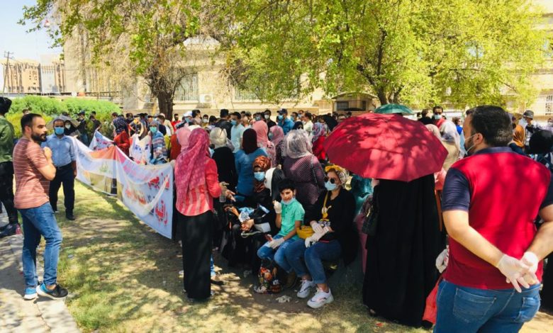 نظم العشرات من حملة الشهادات العليا، الاثنين، اعتصاما أمام وزارة التعليم العالي والبحث العلمي وسط بغداد، مطالبين بالتعيين.
