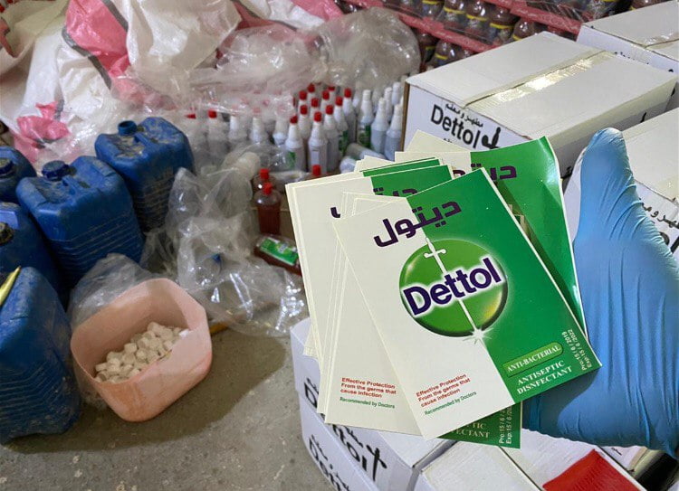 وقال مصدر إن قوات مكافحة الجريمة الاقتصادية القت القبض على مجموعة من الاشخاص يقومون بتعبئة مواد التعفير والتعقيم داخل معمل للحديد في المحافظة، مشيرة الى اغلاق المعمل واحالة الاشخاص الى القضاء.