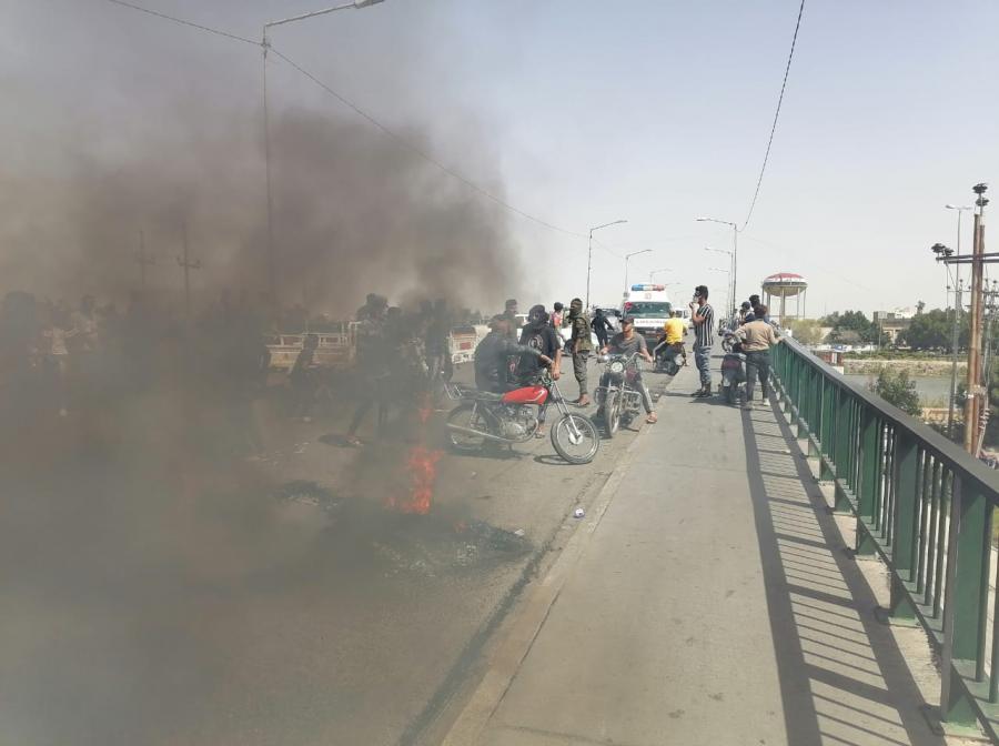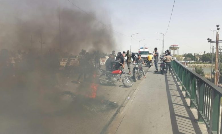 قطع متظاهرين في محافظة ذي قار، الخميس، الجسور والطرق، احتجاجا على عودة المحافظ المستقيل عادل الدخيلي إلى منصب