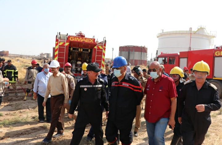 الدفاع المدني يستنفر طاقاته ويسخر إمكاناته لاسناد فرق النفط لاستيعاب والسيطرة على النيران في مصف القيارة