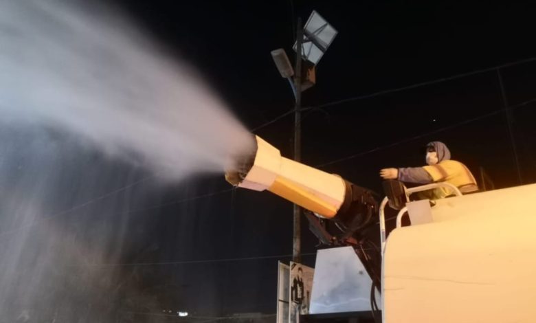 واضافت، ان “عملية التعفير جاءت بواسطة مدافع التعفير المصنعة من قبل ملاكات امانة بغداد لدعم جهود الملاكات الصحية في مواجهة جائحة كورونا وبالتنسيق مع الجهات المختصة”.