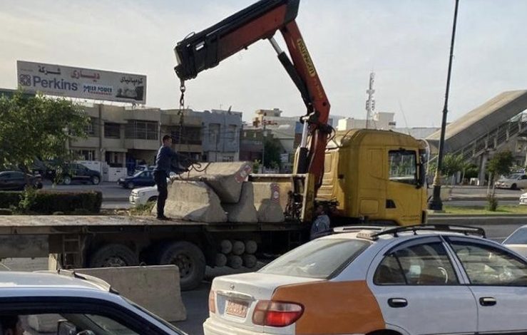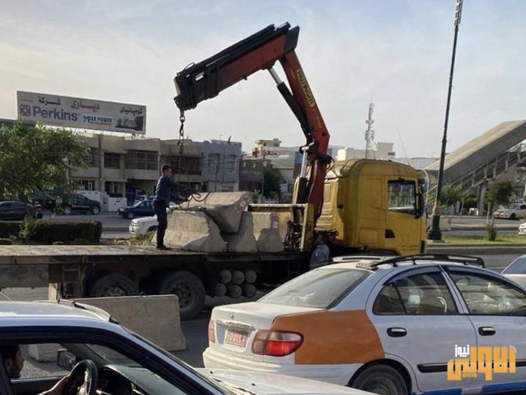 بالصور.. قطع أوصال السليمانية بالتراب والكتل الكونكريتية