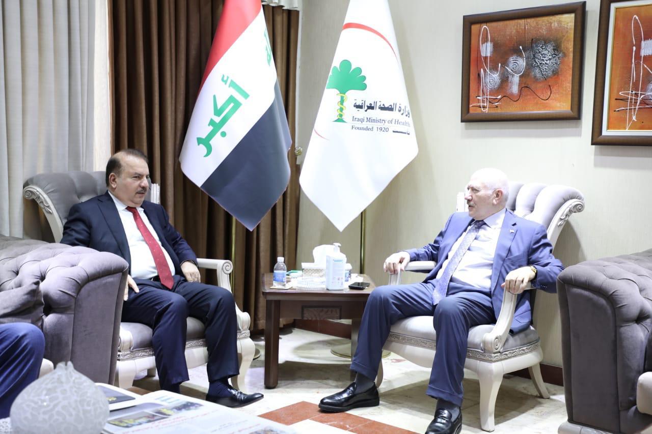 أجرى معالي وزير الداخلية الدكتور ياسين طاهر الياسري زيارة لوزارة الصحة وكان في استقباله معالي وزير الصحة والبيئة الدكتور جعفر صادق علاوي الذي رحب بزيارة السيد الوزير واصفا إياها بالمهمة في إطار توحيد الجهود لمواجهة فايروس كورونا .