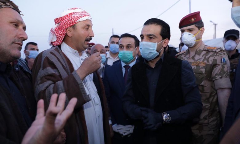 زار رئيس مجلس النواب محمد الحلبوسي مخيمات النازحين للاطلاع ميدانيًا على الحملات التي تقوم بها الملاكات الخدمية والفرق الصحية في تعقيمها وتعفيرها للوقاية من وباء كورونا