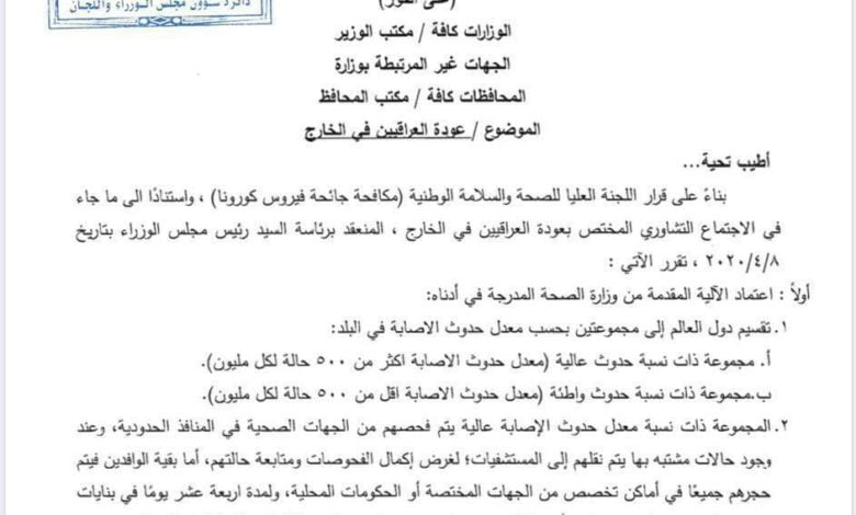 الرئيسية/المحلية/بالوثائق.. آلية عودة العراقيين الذين في الخارج المحلية بالوثائق.. آلية عودة العراقيين الذين في الخارج Manager Awla2020-04-10 أقل من دقيقة فيسبوك X واتساب تيلقرام مشاركة عبر البريد Manager Awla2020-04-10 أقل من دقيقة فيسبوك X واتساب تيلقرام مشاركة عبر البريد