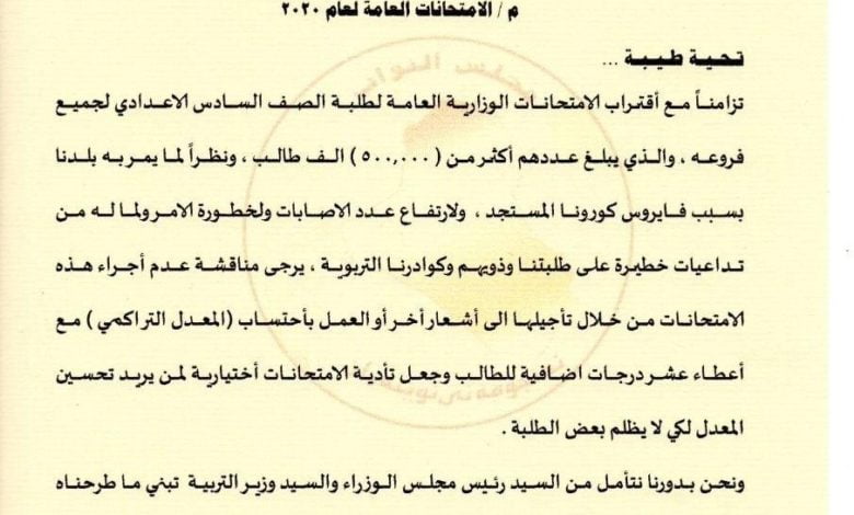 بالوثيقة.. التربية النيابية تقدم مقترحين بشأن الامتحانات الوزارية