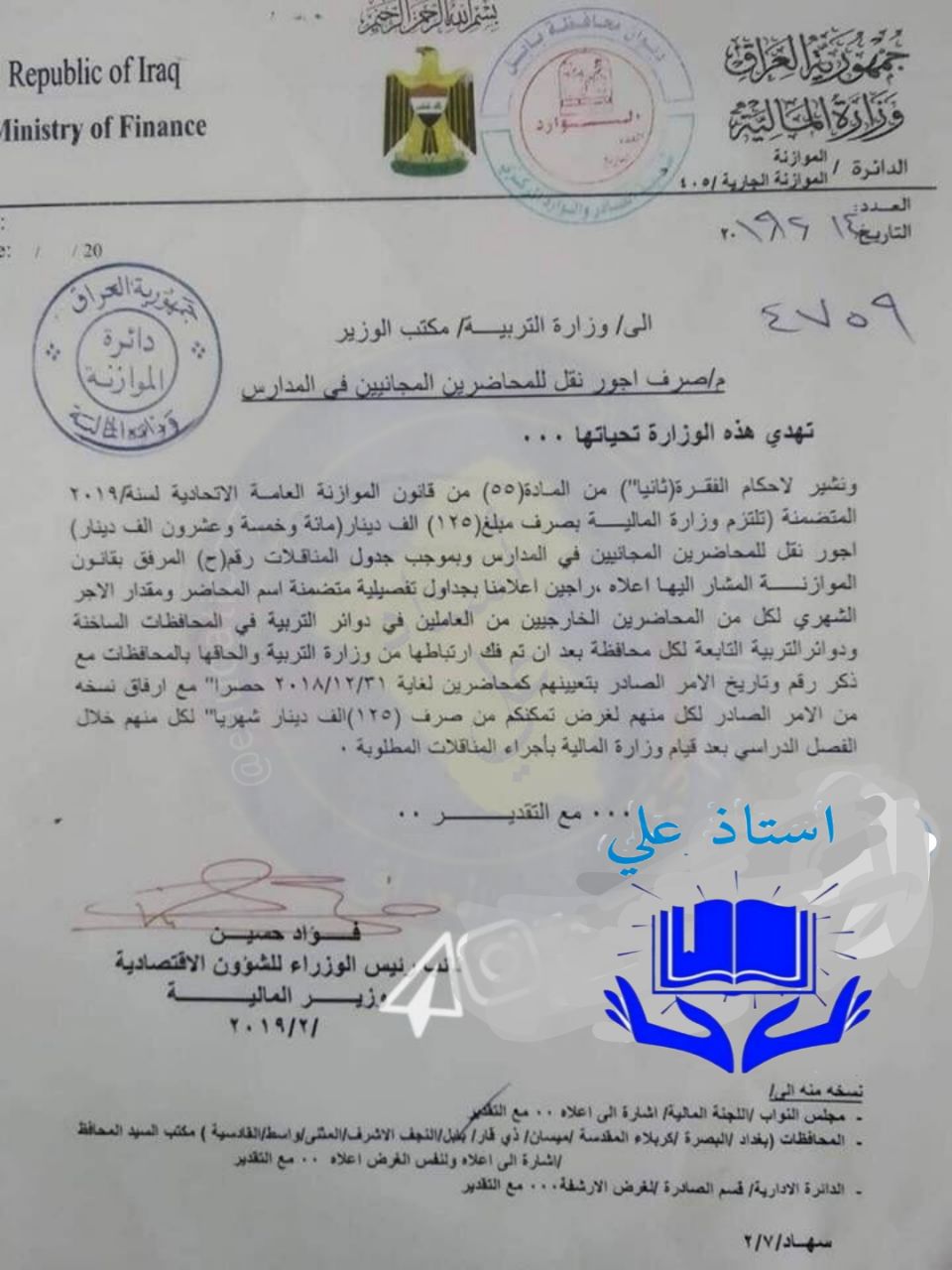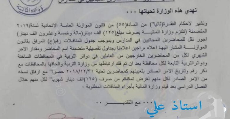 الرئيسية/slide/بالوثيقة : المالية تخاطب وزارة التربية بصرف اجور نقل للمحاضرين المجانيين في المدراس slideالمحلية بالوثيقة : المالية تخاطب وزارة التربية بصرف اجور نقل للمحاضرين المجانيين في المدراس Manager Awla2019-02-23 أقل من دقيقة فيسبوك X واتساب تيلقرام مشاركة عبر البريد Manager Awla2019-02-23 أقل من دقيقة فيسبوك X واتساب تيلقرام مشاركة عبر البريد