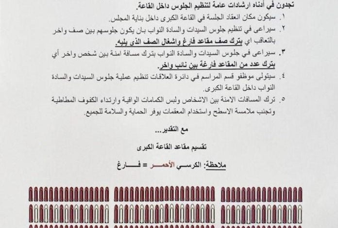 الرئيسية/المحلية/بالوثيقة.. تعليمات الجلوس والوقاية للنواب في جلسة التصويت على الحكومة غداً المحلية بالوثيقة.. تعليمات الجلوس والوقاية للنواب في جلسة التصويت على الحكومة غداً Manager Awla2020-05-05 أقل من دقيقة فيسبوك X واتساب تيلقرام مشاركة عبر البريد Manager Awla2020-05-05 أقل من دقيقة فيسبوك X واتساب تيلقرام مشاركة عبر البريد
