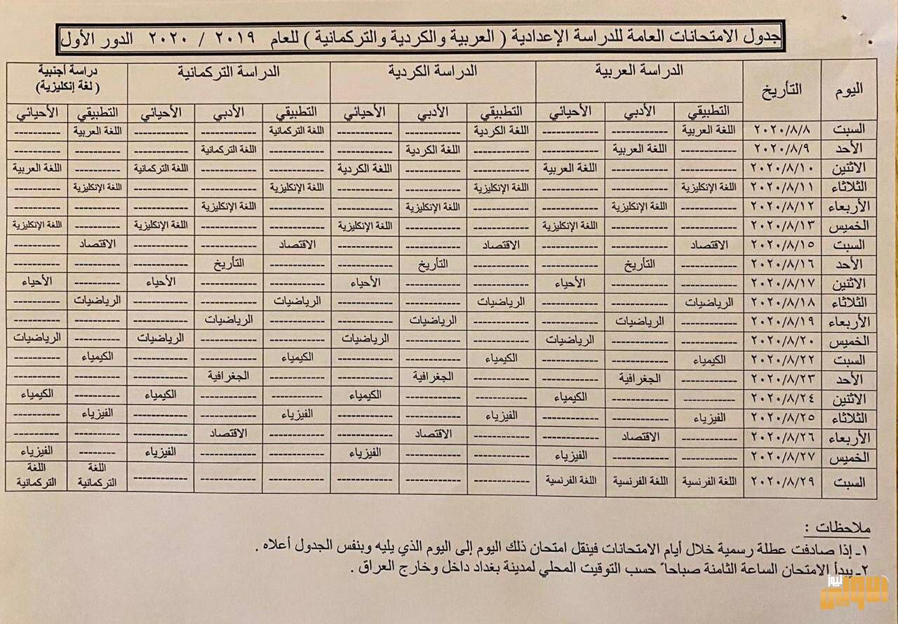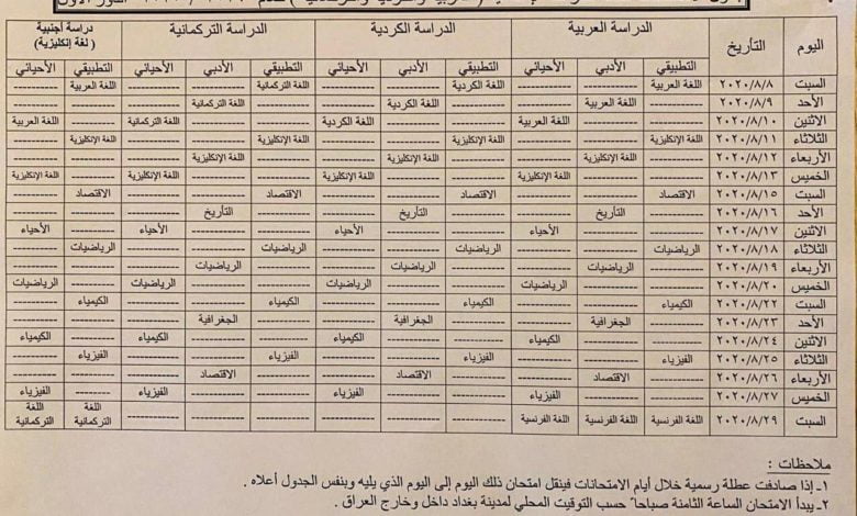 بالوثيقة.. جدول الامتحانات النهائية للسادس الإعدادي بفروعه كافة