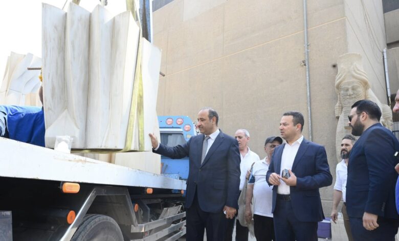 وقالت الوزارة في بيان تلقته (الاولى نيوز )، إن “وزير الثقافة والسياحة والآثار حسن ناظم أشرف على إجراءات نقل نصب (النخلة، دجلة والفرات) للفنان الراحل إسماعيل فتاح الترك إلى ساحة الحسنين قرب جسر الطابقين وسط بغداد”.
