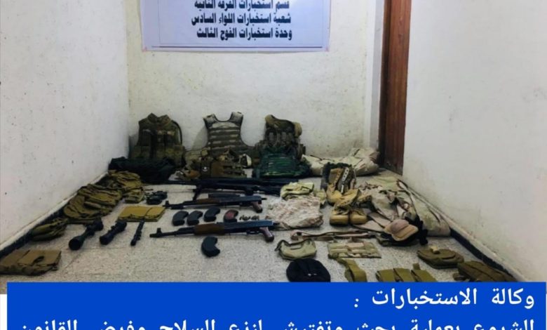 وأضاف البيان، أن “العملية نتجت عنها ضبط عدد من بنادق الكلاشنكوف وبنادق صيد واعتدة مختلفة وتجهيزات عسكرية متنوعة من دروع ومشالح وملابس و جعب وكسارات ولازالت عمليات البحث والتفتيش مستمرة وفق معلومات استخباراتية. وقد تم مصادرة المضبوطات وتسليمها الى الجهات المختصة بموجب وصل استلام اصولي”.