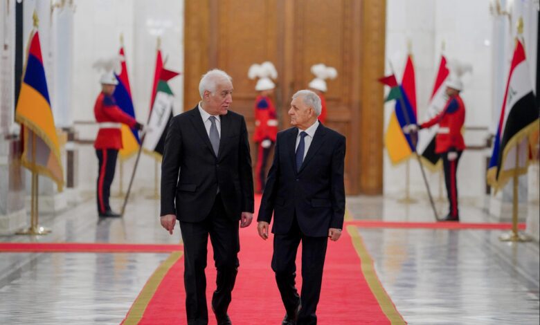 بدء مراسيم استقبال رئيس الجمهورية لنظيره الأرميني في بغداد