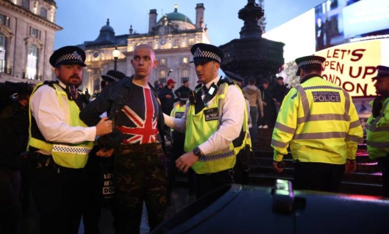 وفي وقت سابق، قالت الشرطة إنها حتى الساعة 10:30 من مساء الجمعة بالتوقيت المحلي (21:30 بتوقيت جرينتش) كانت قد اعتقلت 18 شخصاً، وكتبت على تويتر إن أغلب هؤلاء اعتُقلوا في وسط لندن وفي منطقة استاد ويمبلي.
