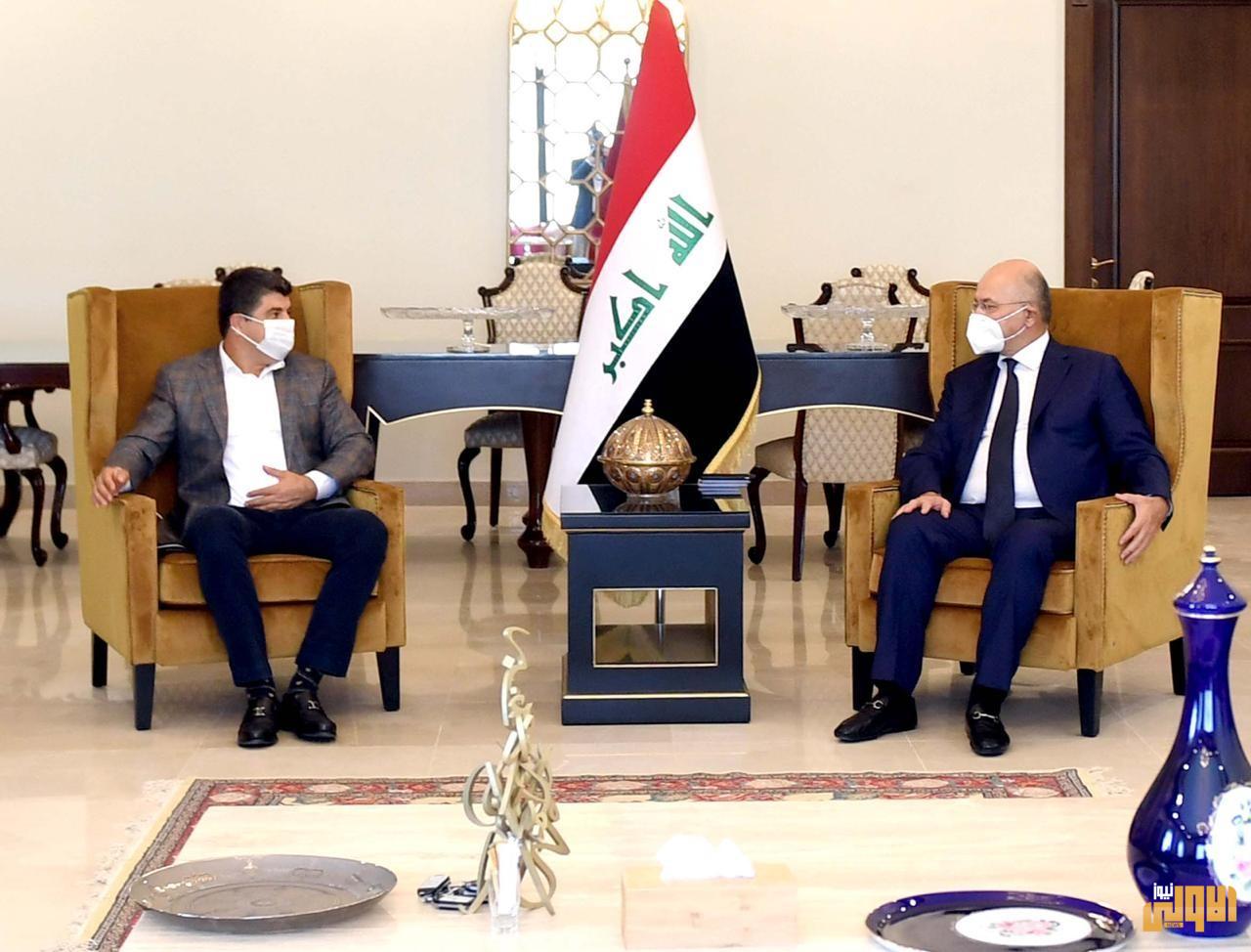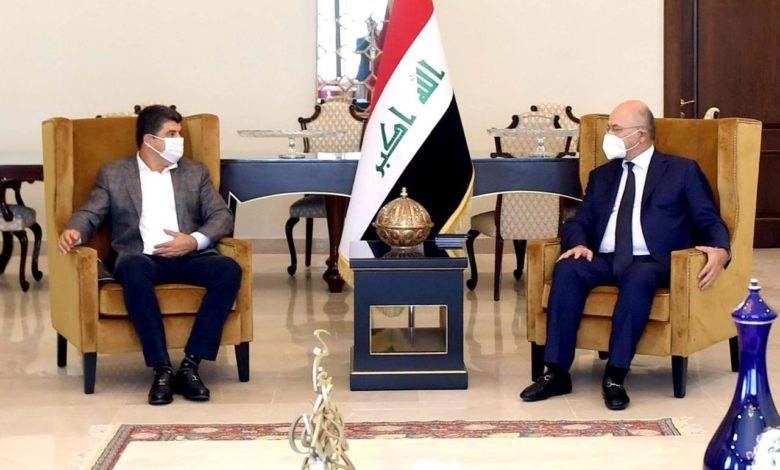 أكد رئيس الجمهورية، برهم صالح، والرئيس المشترك للإتحاد الوطني الكردستاني، لاهور شيخ جنكي، الثلاثاء، أهمية حسم الملفات العالقة بين الحكومة المركزية وحكومة اقليم كردستان، بشكل نهائي وعلى أساس الدستور.