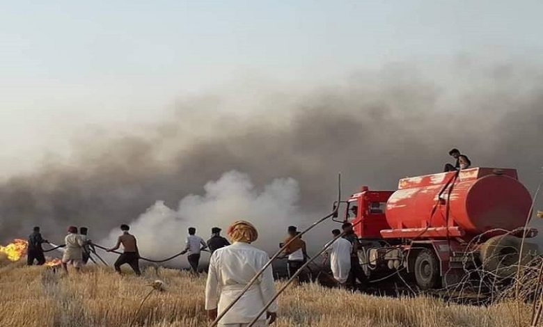 بعد المشخاب.. حرائق في مزارع الحنطة تمتد لـ ألف دونم في العباسية بالنجف