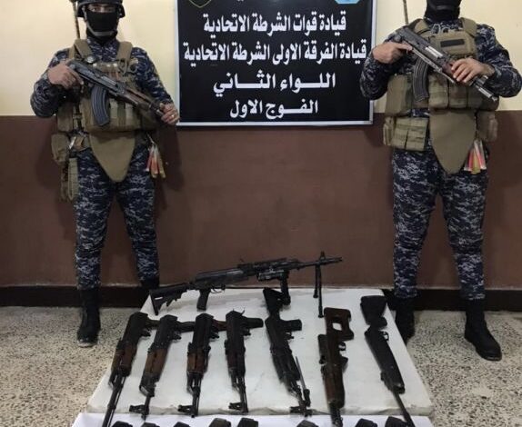 وذكر بيان للقيادة تلقته (الاولى نيوز )، أنه “اسفرت الجهود الأمنية لقطعات الفرقة الأولى شرطة إتحادية لتأمين وحماية المناطق وحصر السلاح بيد الدولة عن تمكن مفارز اللواء الأول وبإسناد الجهد الاستخباري من تنفيذ عملية تفتيش عن الأسلحة الغير مرخصة في ناحية (النهروان /منطقة الدوانم) في بغداد”.