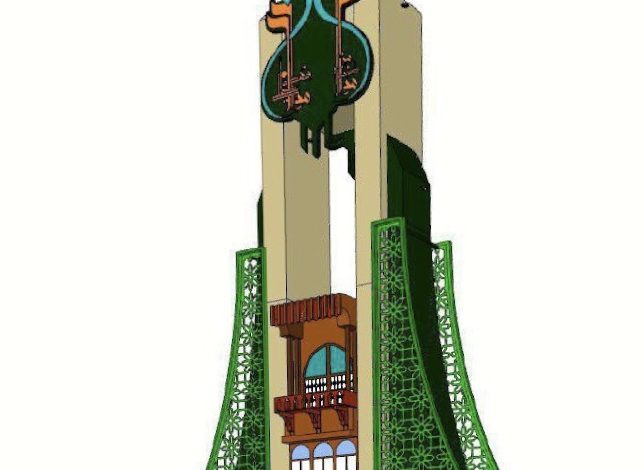 وأضاف السوداني ان “ارتفاع النصب سيكون ١٢ متر وبعرض ٦ أمتار، فيما ستكون هناك نافورة ماء الى الهيكل الرئيسي للدلالة على العطاء المستمر لهذه المدينة وتضيف طابعاً حضارياً حديثاً للنصب ١٢ نافورة فرعية تتوزع على أطراف الحوض الرئيسي”.