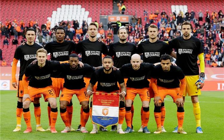 وبدأ المنتخب الهولندي المباراة بقميص تظهر عليه عبارة: “كرة القدم تدعم التغيير”، “Football Supports Change”.