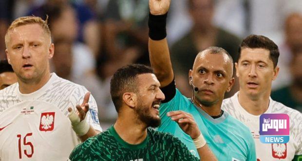 وحصل على البطاقة، بعد أن احتج على الحكم، بعد تدخل لاعب بولندا ماتي كاش، على زميله محمد البريك.
