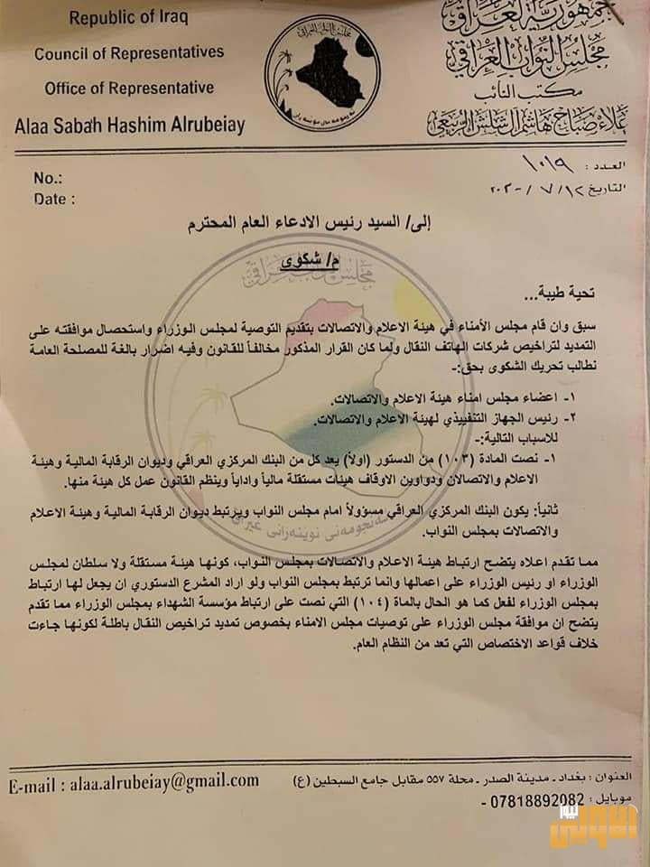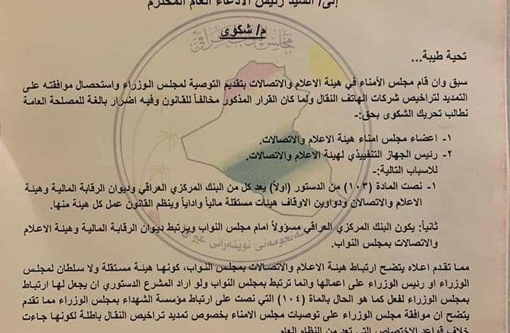 تحريك دعوى قضائية بالضد من تمديد رخصة شركات الاتصال