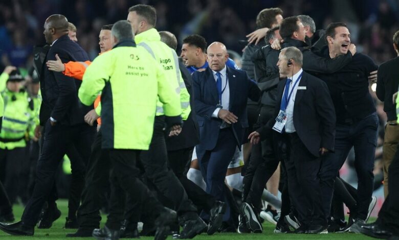 كما اجتاح مشجعو إيفرتون الملعب في جوديسون بارك بعد هدف الفوز المتأخر لدومينيك كالفرت لوين، وكذلك مع صفارة النهاية في الفوز 3/2 على كريستال بالاس الذي ضمن له البقاء في دوري الأضواء.