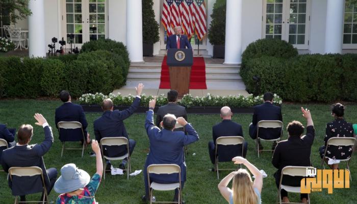 بربطة عنقه الحمراء التي باتت رمزا له، امتطى الرئيس الأمريكي دونالد ترامب، منصة انتصبت في حديقة البيت الأبيض ليحول مؤتمرا صحفيا إلى تجمع انتخابي.