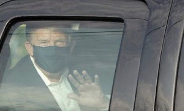 شوهد الرئيس الأمريكي، دونالد ترامب، الأحد، في سيارته خارجا من المستشفى الذي يقيم فيه، بهدف إلقاء التحية على أنصاره المتجمهرين دعما له بعد إصابته بفيروس كورونا.