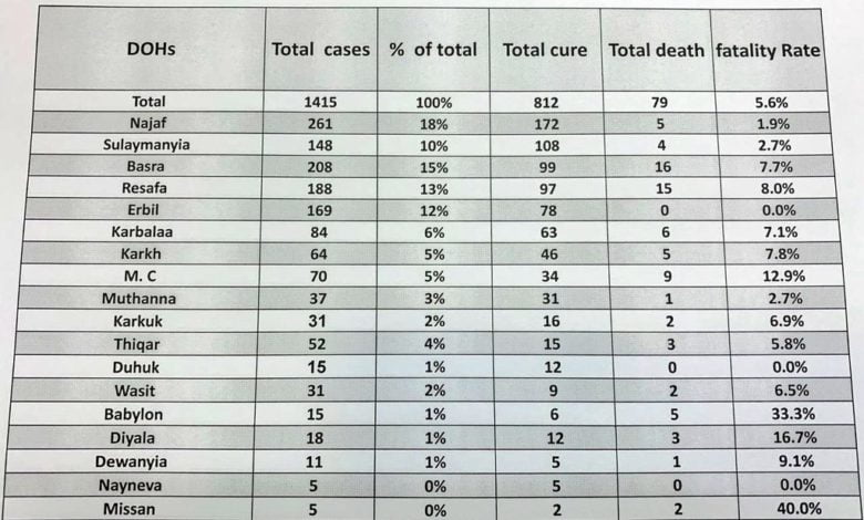 اما نسب الوفيات الاعلى في ميسان تليها بابل.