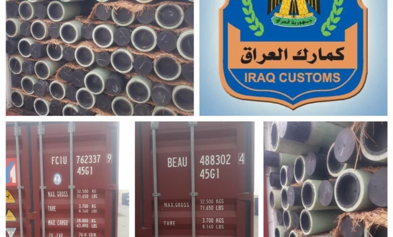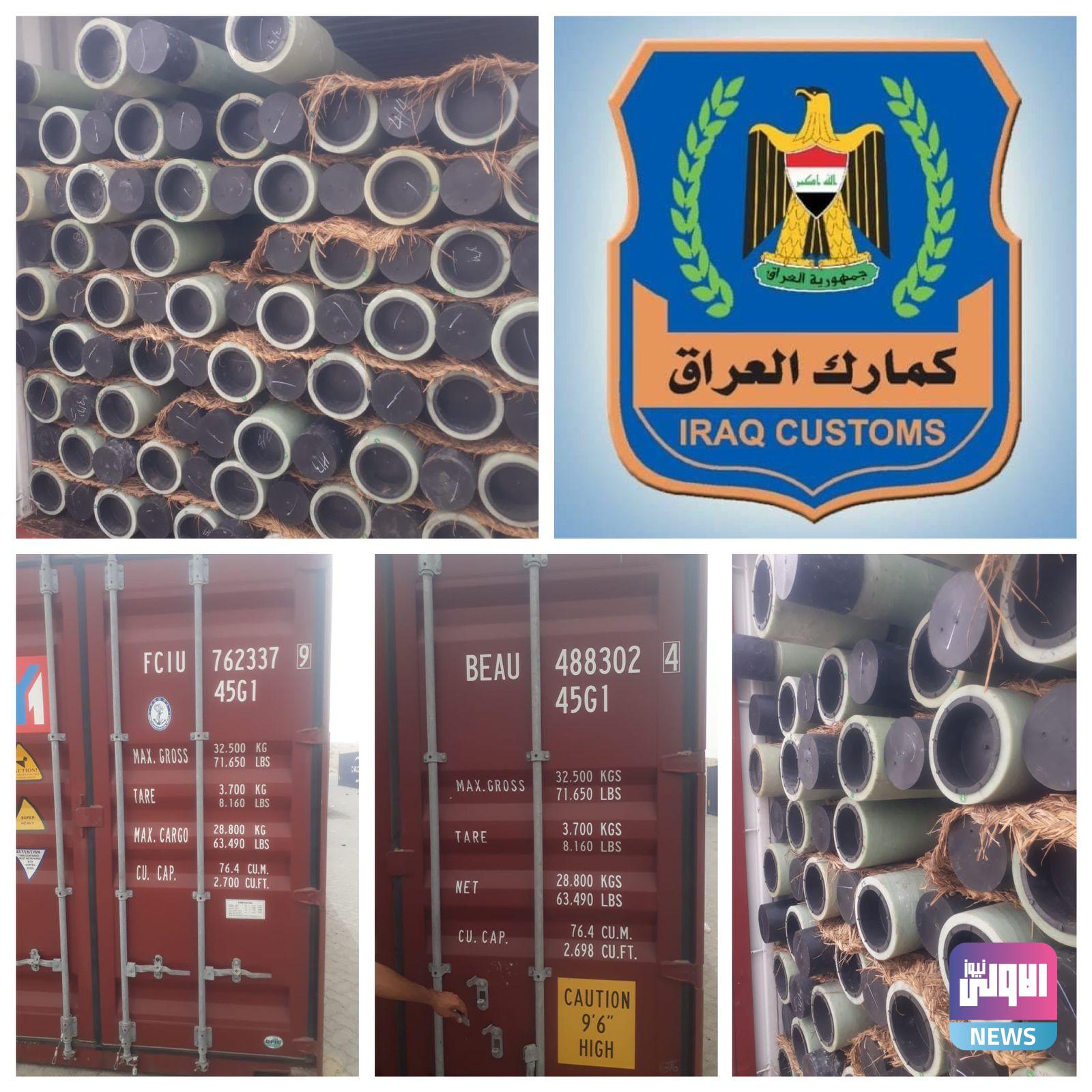 تضبط حاويتين تحمل انابيب فايبر مخالفة في مركز كمرك بوابة البصرة