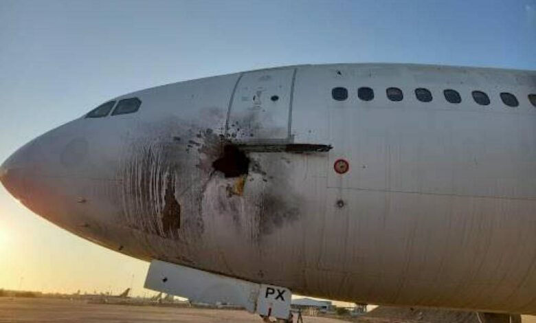 تضرر طائرة عراقية جراء قصف صاروخي طال مطار بغداد الدولي (صور)
