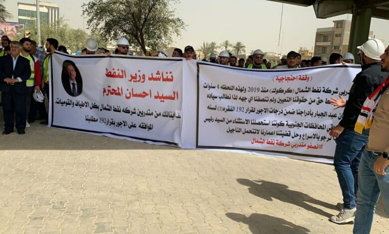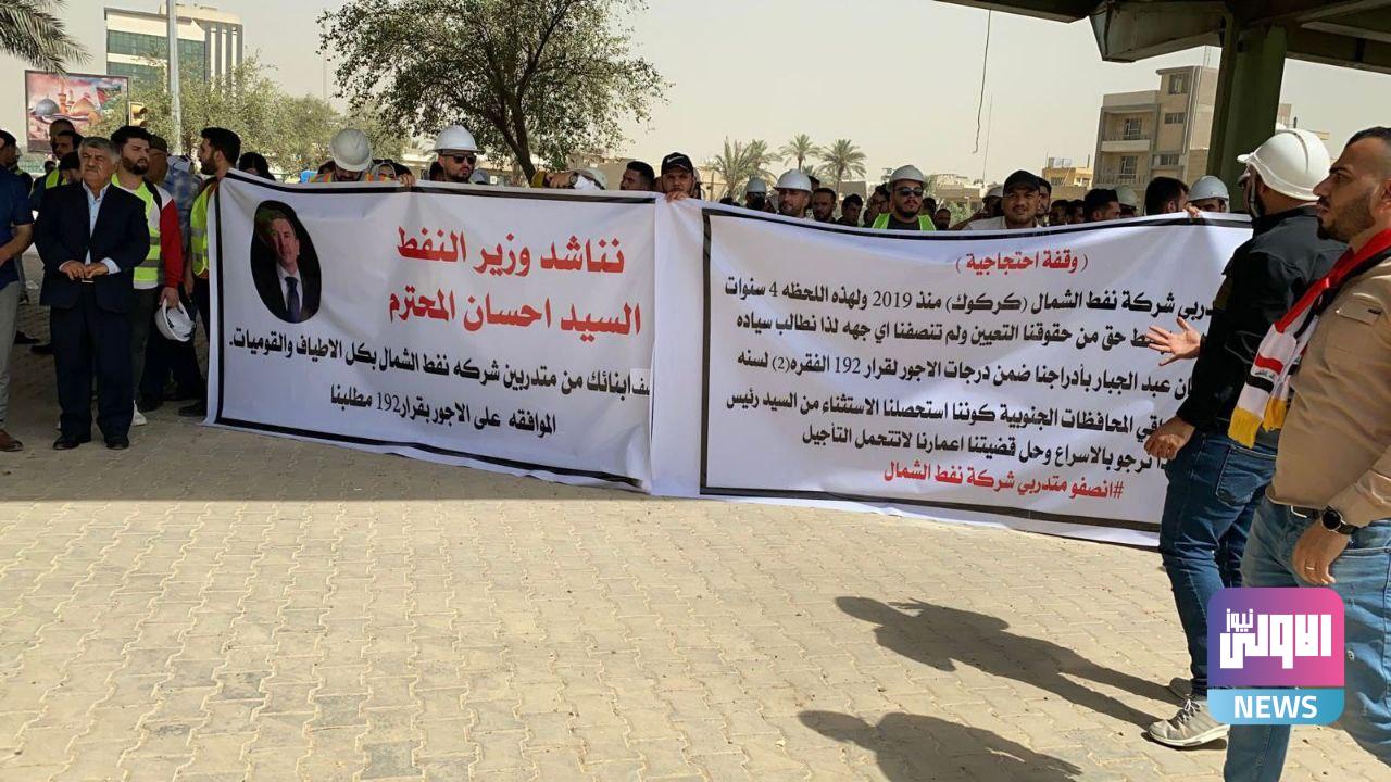 تظاهرات امام وزارة النفط في بغداد من قبل متدربي شركه نفط الشمال للمطالبة بصرف اجورهم (صور)