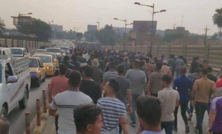 تظاهر أصحاب العقود في وزارة الكهرباء، الثلاثاء، أمام بوابة المنطقة الخضراء للمطالبة بتثبيتهم على الملاك الدائم.