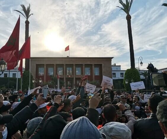 وتجمعت أيضا مجموعات من المتظاهرين في الرباط وطنجة ومراكش.
