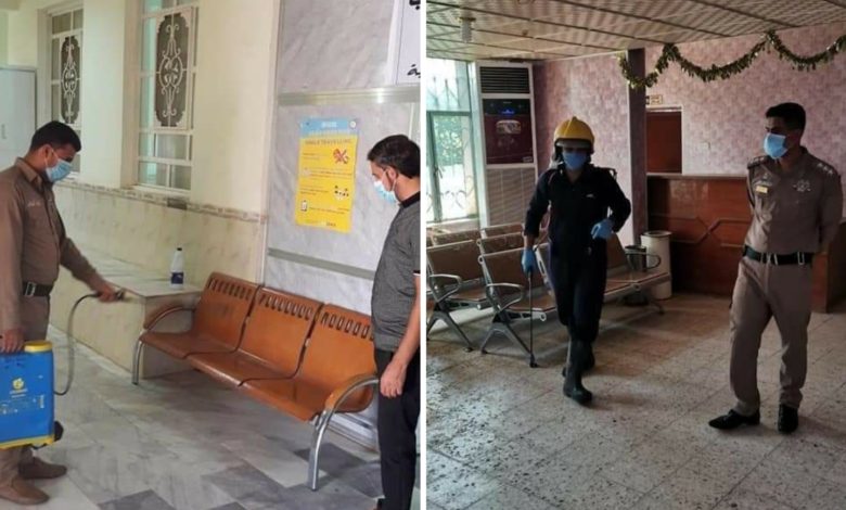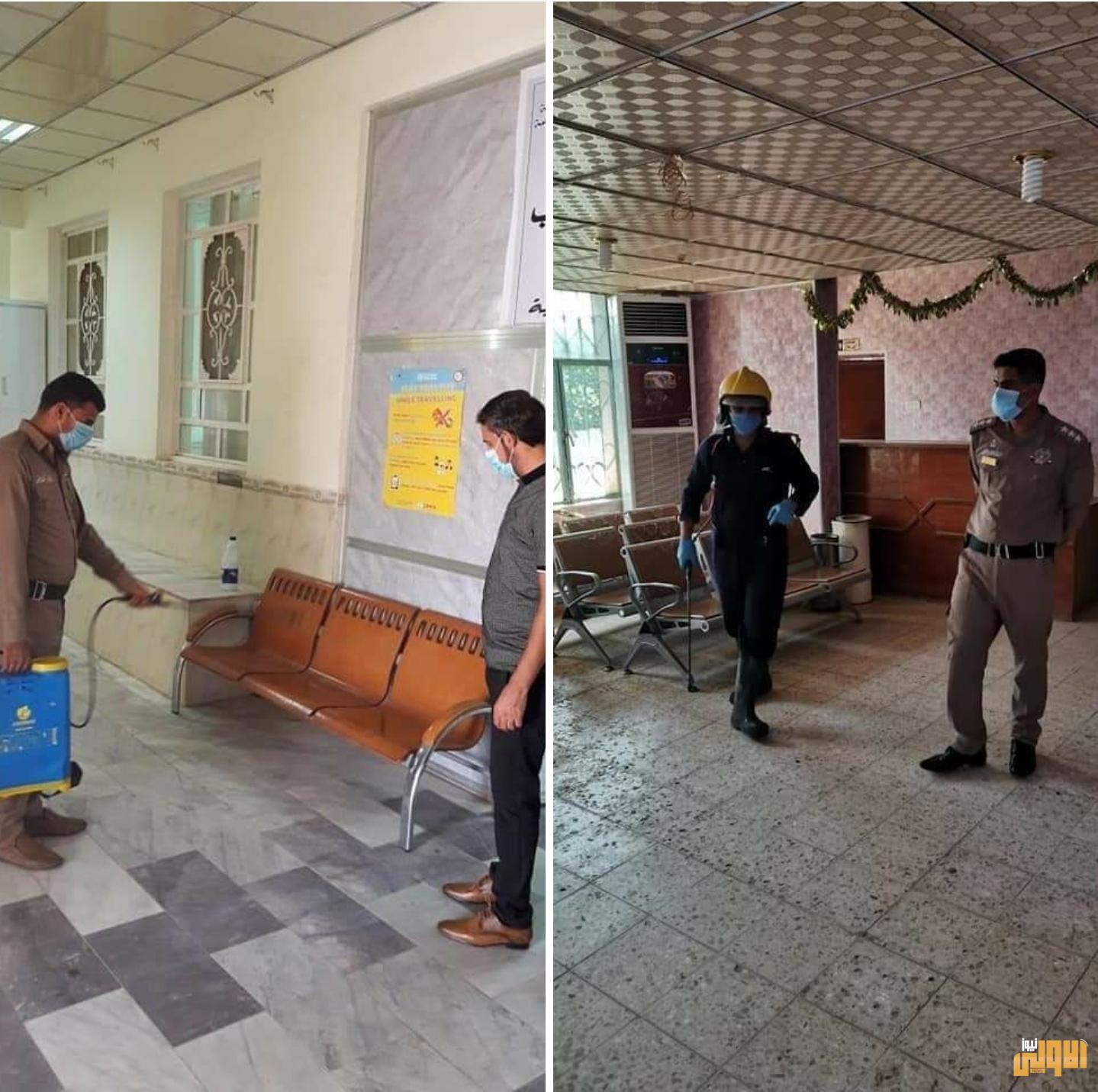 وجه العقيد حامد كاظم علك الزاملي مدير الاحوال المدنية والجوازات والاقامة في محافظة المثنى بحملة تعفير في دوائر البطاقه الوطنية في أقضية (الهلال والخضر والنجمي) بمشاركة المنتسبين والموظفين، وبالتعاون والتنسيق مع مديرية الدفاع المدني، للوقاية من انتشار فايروس كورونا وأخذ الإجراءات الاحترازية لتجنب الاصابة بهذا الوباء.