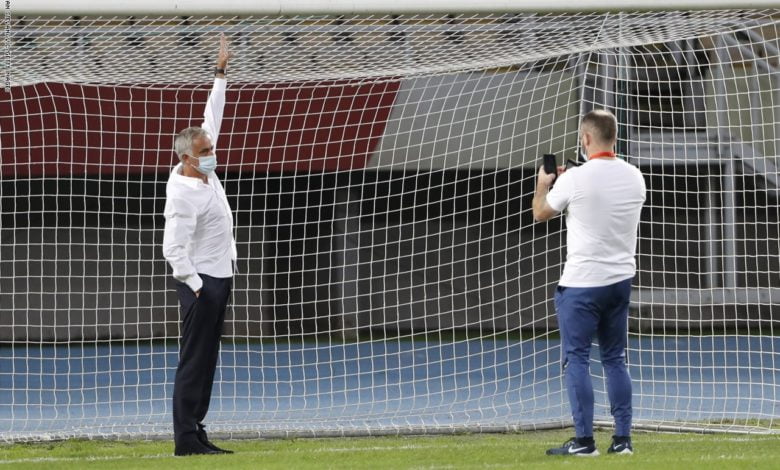 وبعد المباراة نشر مورينيو صورة في انستجرام وهو يكاد يلمس العارضة.