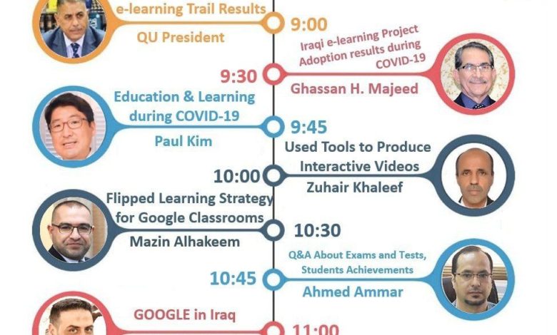 عقدت جامعة القادسية وبالتعاون مع منظمة الصحة العالمية مؤتمرها العلمي الدولي الافتراضي الاول عن جائحة كورونا عبر منصة زوم.