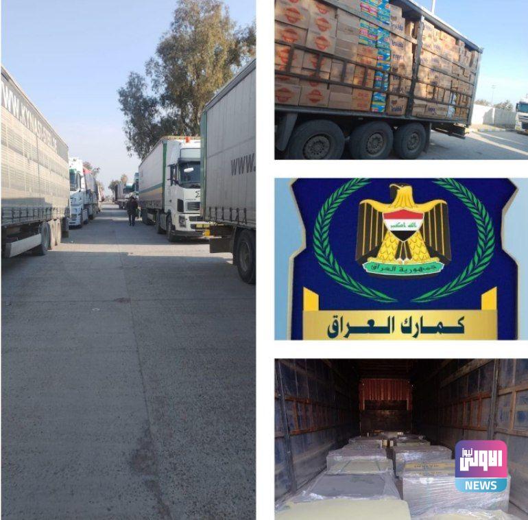 وقال الهيئة في بيان تلقته (الاولى نيوز ) ان “قسم التحري ومكافحة التهريب في مديرية جمرك المنطقة الوسطى ضبط (23) شاحنة تحمل مواد مخالفة (انبولات فارغة ومواد غذائية متنوعة واثاث غرف نوم وشبكات حديد ابراج وحديد زاوية بليت قاصات وفلين)”.