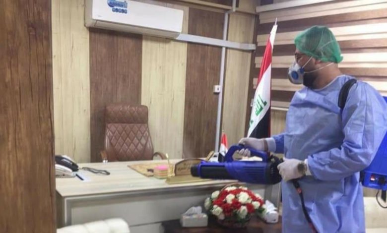 حملة للتعفير والتعقيم بمبنى البطاقة الوطنية في بغداد